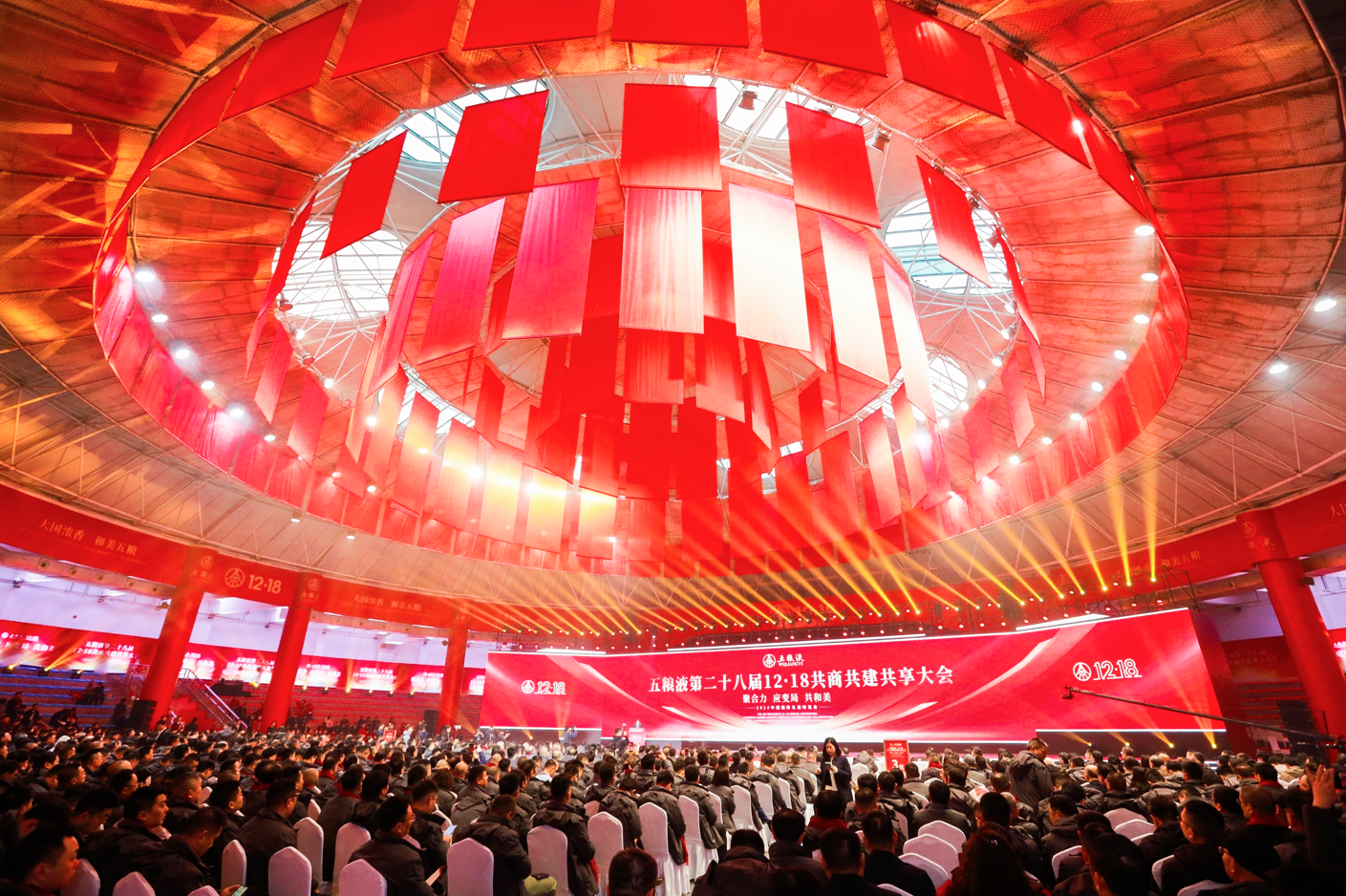 12月18日,五粮液第二十八届12・18共商共建共享大会在五粮液多功能厅举行。此次大会以“聚合力,应变局,共和美”为主题,千余名海内外合作伙伴齐聚一堂,共同见证五粮液在行业中的创新与发展。