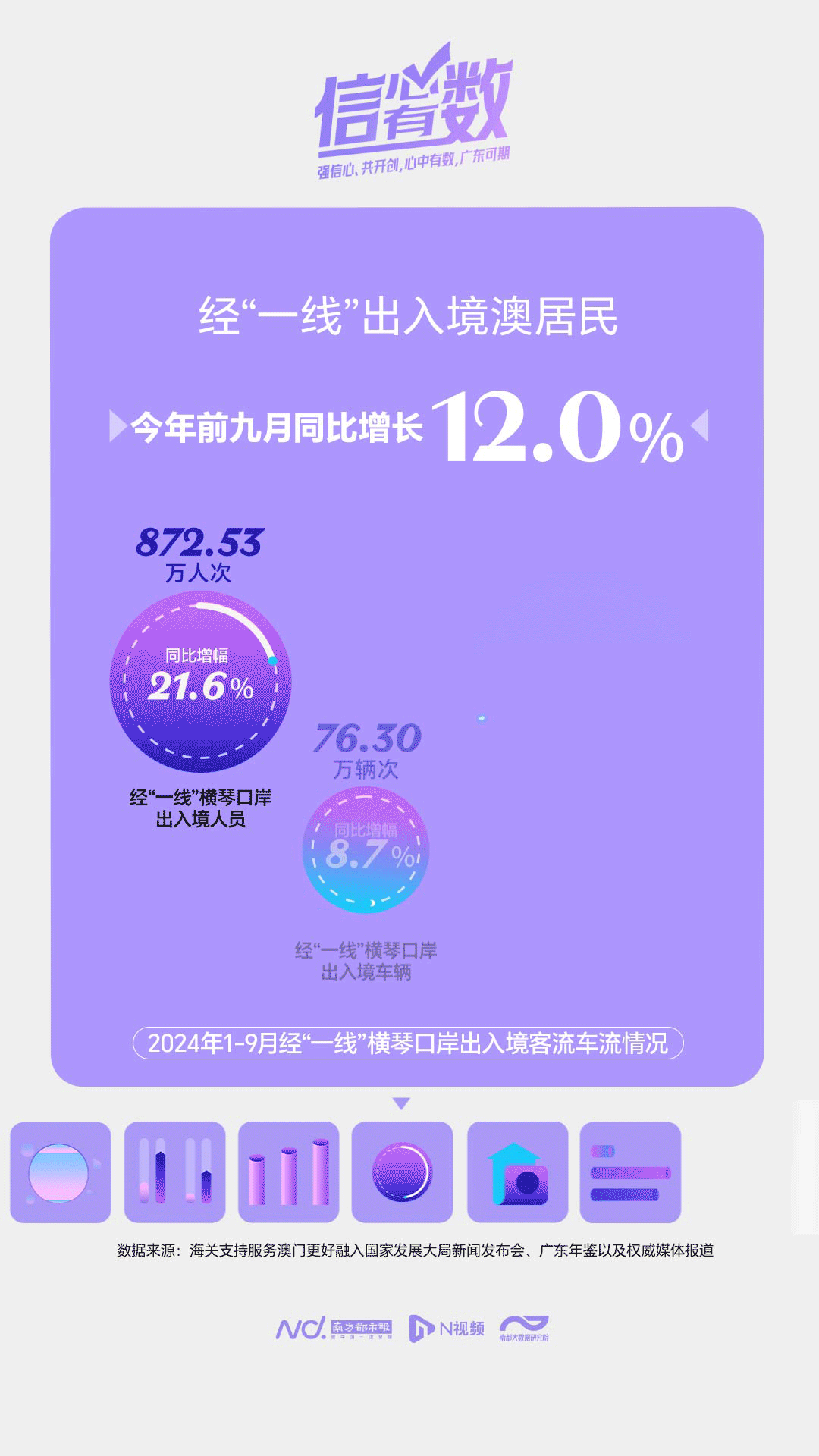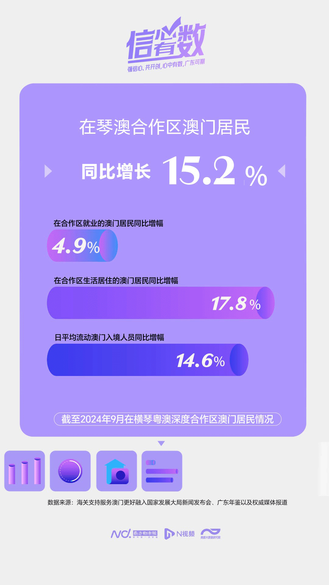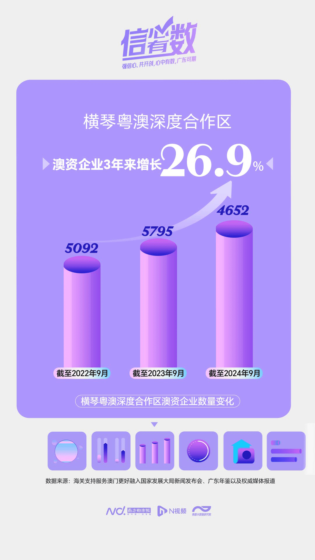 《横琴粤澳深度合作区建设总体方案》《横琴粤澳深度合作区总体发展规划》等政策红利的持续释放,吸引越来越多澳资企业到横琴扎根,越来越多的澳门人在横琴粤澳深度合作区就业、生活居住。截至2024年9月,横琴粤澳深度合作区澳资企业6461家,同比2022年增长26.9%;在横琴粤澳深度合作区生活居住的澳门居民同比增长19.1%。