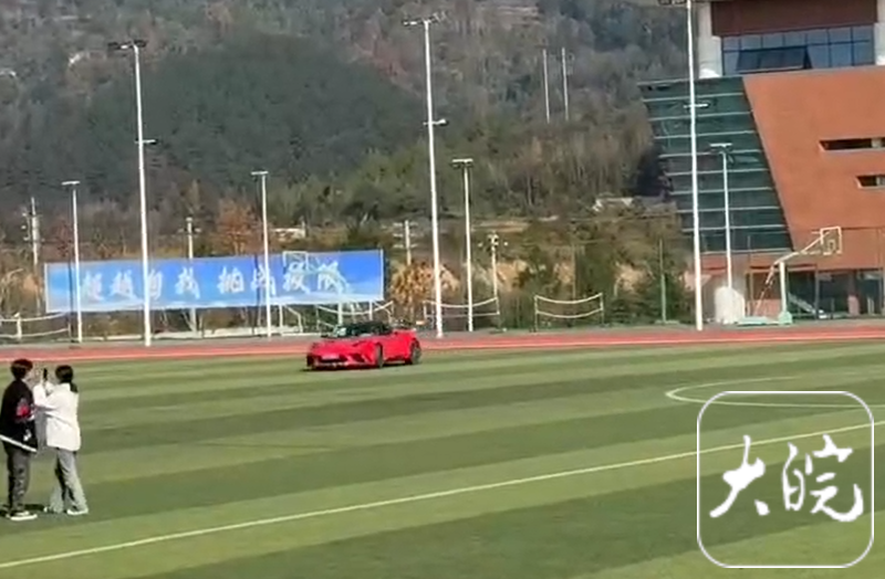 一跑车在学校操场漂移。(视频截图)