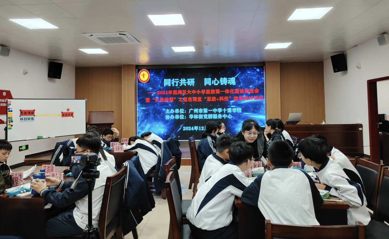 12月19日,广州市荔湾区2024年大中小学思政课一体化建设推进会暨广州市第一中学教育集团“大思政课”教学研讨活动在广州市第一中学高中部举行。