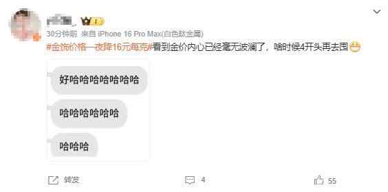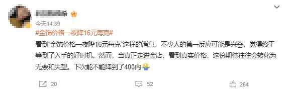 19日,话题“金饰价格一夜降16元每克”冲上热搜第一,引发热议。