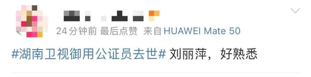 据新湖南客户端消息,与湖南卫视长期合作的公证员刘丽萍已于今年9月底去世。