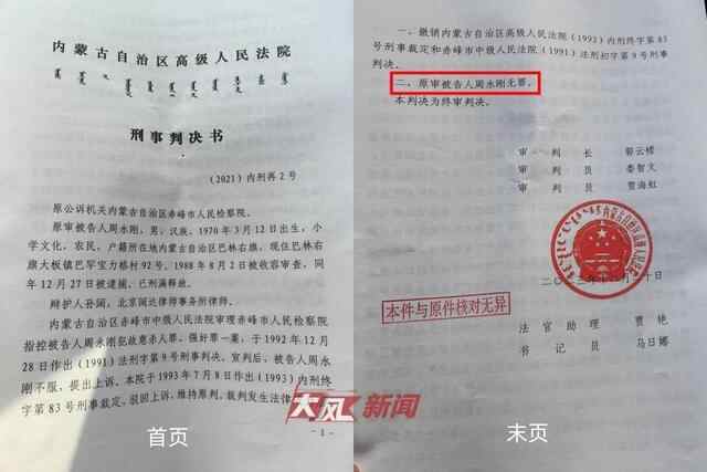 2023年12月20日,内蒙古自治区高院宣判周永刚无罪,这起发生在35年前的冤案得到纠正。