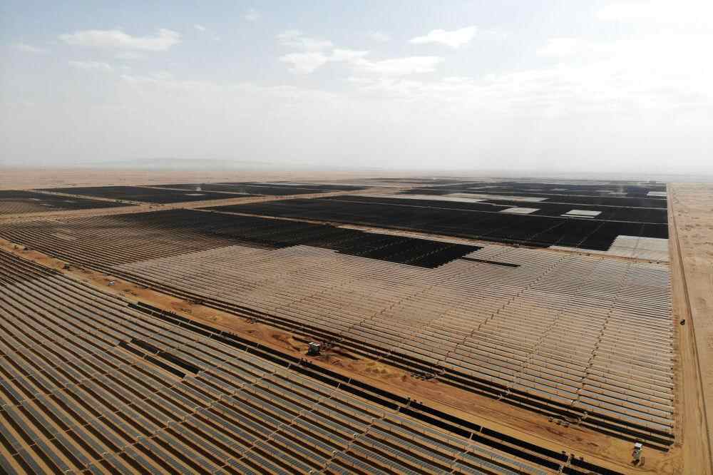 这是9月2日拍摄的阿联酋迪拜马克图姆太阳能公园四期光热光伏综合发电项目现场(无人机照片)。新华社发