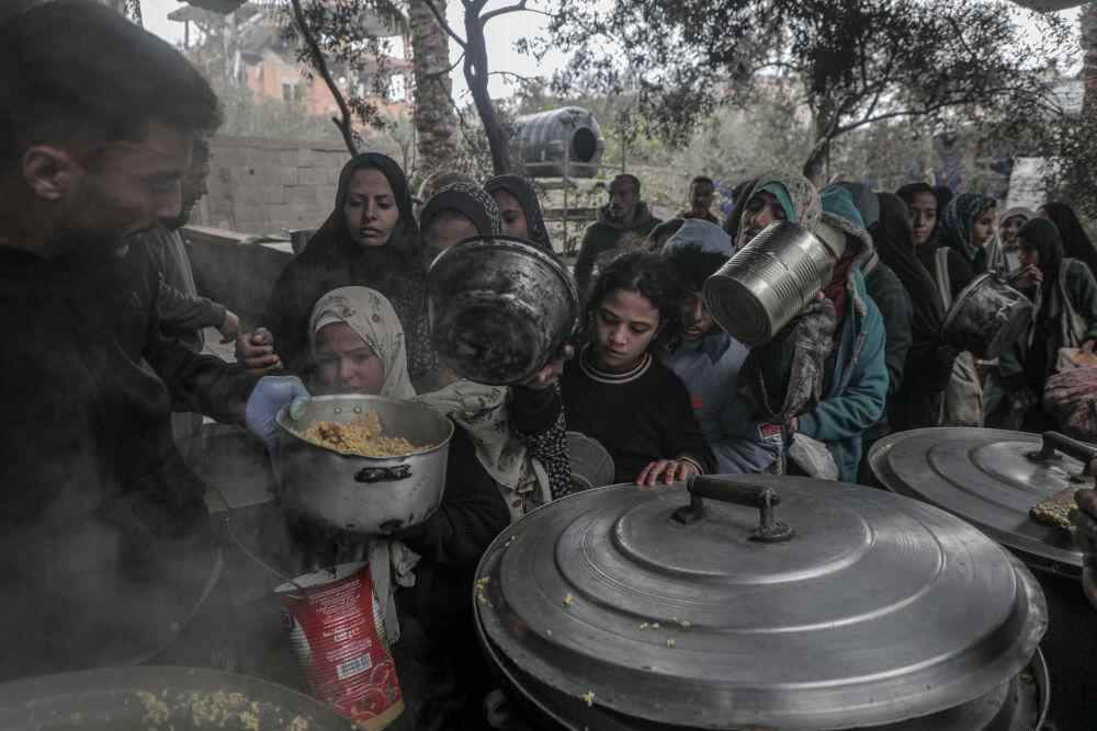 12月20日,巴勒斯坦人在加沙地带中部代尔拜拉赫领取食物。新华社发(里泽克·阿卜杜勒贾瓦德摄)