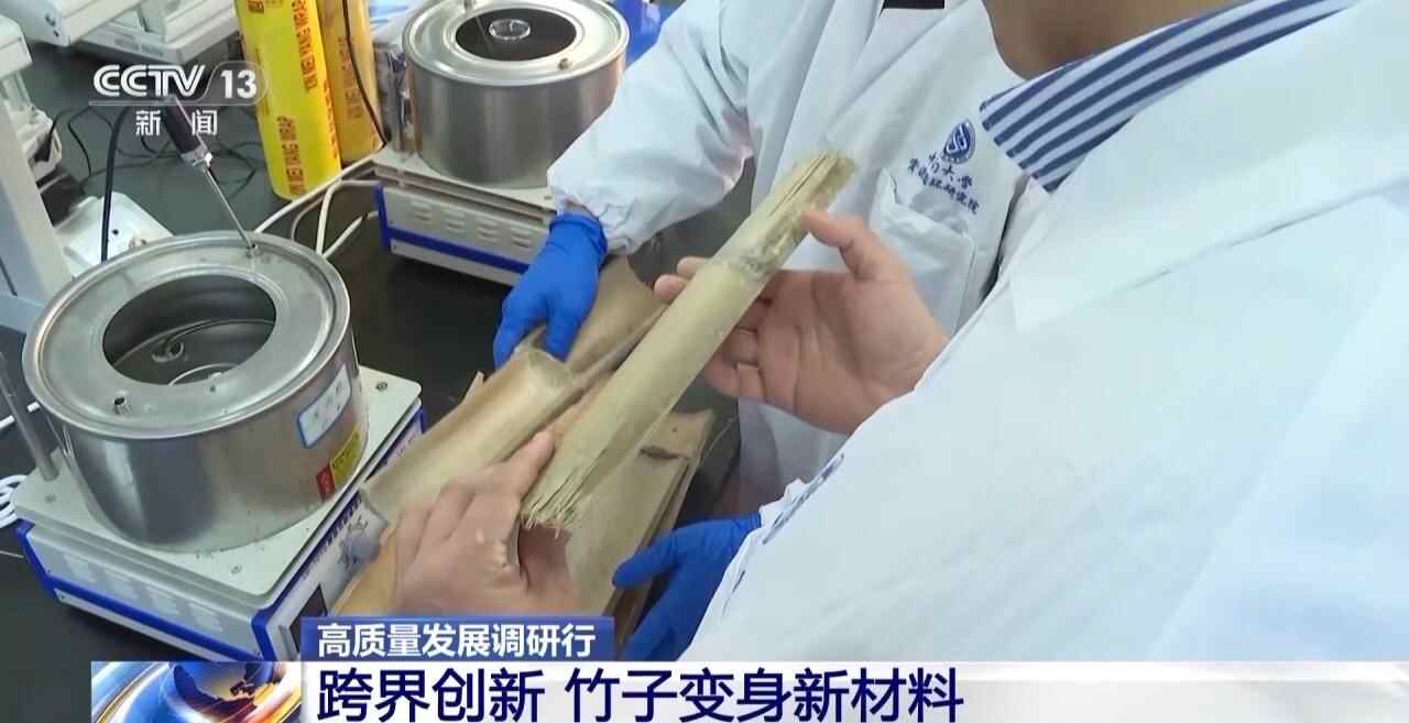 中南林业科技大学材料科学与工程学院院长 李新功:竹子强度很高,它有很好的韧性,所以我们就想利用竹子这种天然材料,去做建筑材料,就可以助力实现“双碳战略”。