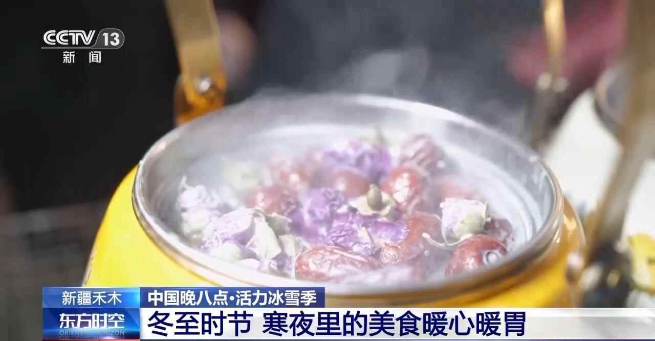 总台记者 刘飞飞:在夜晚,很多游客还会来到这条充满烟火气的小吃街来品尝当地特色美食,一进来我就被这个烤肉摊吸引了,老板一边跳舞一边烤肉,难怪大家都说,跳舞是刻在新疆人的骨子里的;这种烤牛奶也吸引了很多游客,空气里都弥漫着甜香。