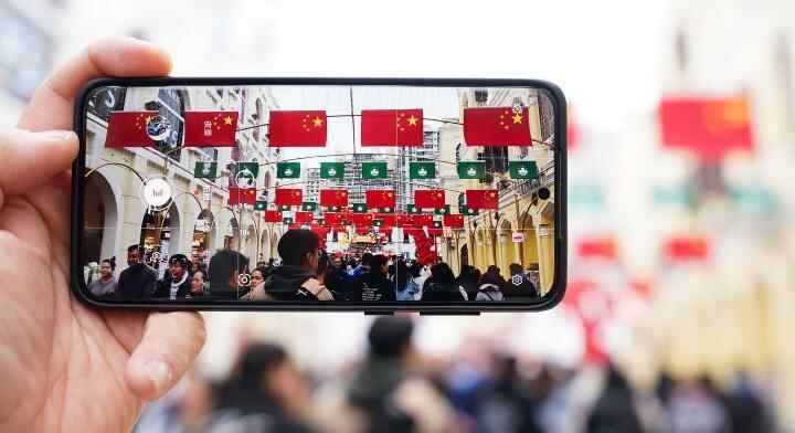 喜迎回归祖国25周年,澳门街头悬挂国旗区旗