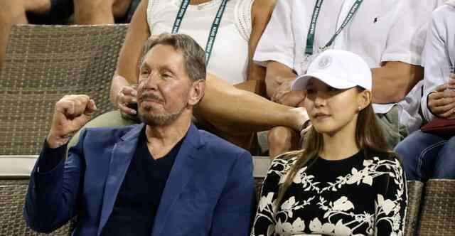 朱乔琳(右)被拍到坐在拉里·埃里森身旁看比赛