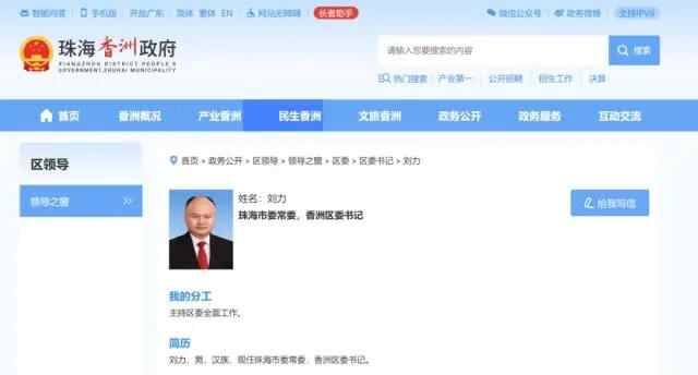 珠海香洲区政府网站“区领导”一栏最新信息显示:刘力现任珠海市委常委、香洲区委书记。