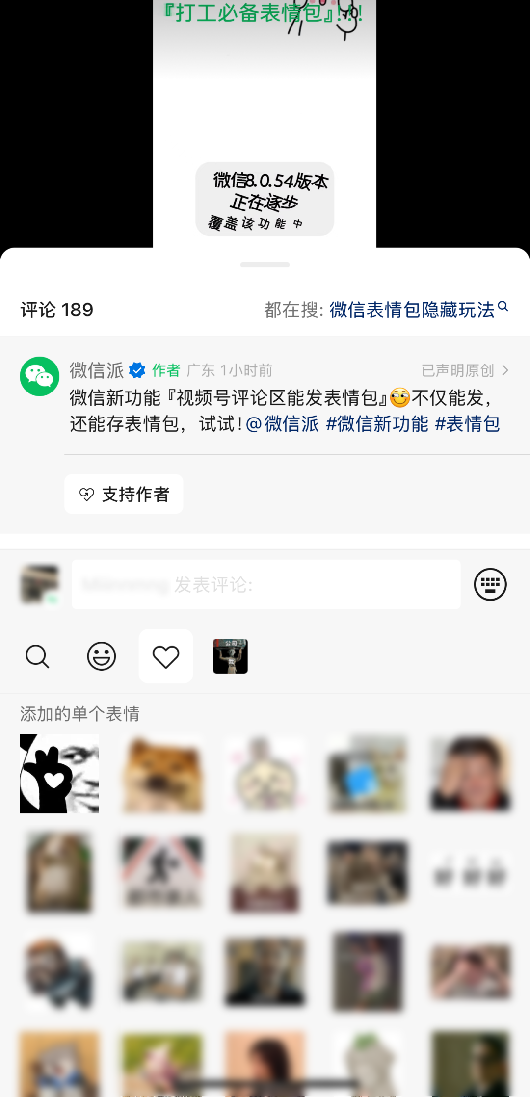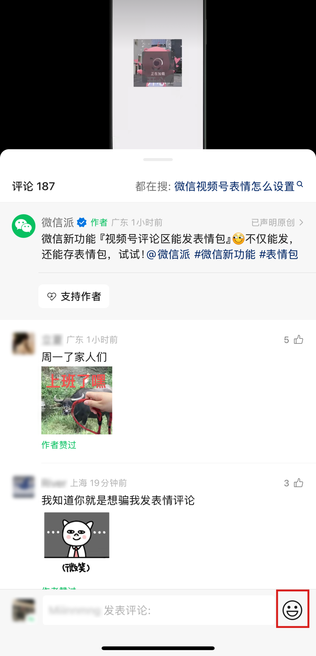 据介绍,更新微信至最新版本,打开微信视频号的视频评论区,点击“笑脸表情”即可选择微信默认表情或收藏的表情包并发送。