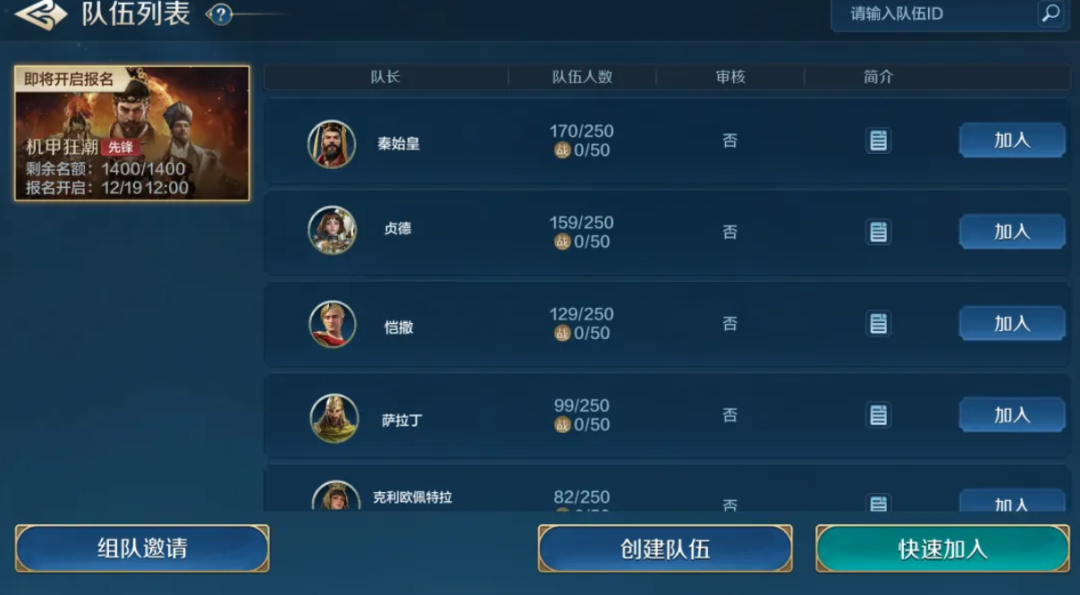 “备战区”概念应该是《世界启元》无限纪元开启前的重要尝试。在同类SLG游戏中,新赛季匹配机制往往不够公开透明,导致匹配周期内没有足够的策略沉浸感,而“备战区”的加入其实是将匹配大厅变得可视化,玩家在保证日常功能的情况下,可以和更多同纪元(赛季进度)的玩家进行直观社交与整合,最终确定是否加入队伍,投身新纪元。