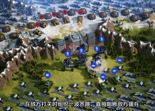 《世界启元》对机甲单位的引进相当超前。虽然在《文明6》中不少人已经体验过末日机甲从天而降时的兴奋,但放在SLG手游圈,算上获得文明IP授权的本家同胞,很多玩家也还是第一次看到如此庞然大物在沙盘地图上高高跃起,然后落在敌方后排开始摧枯拉朽……