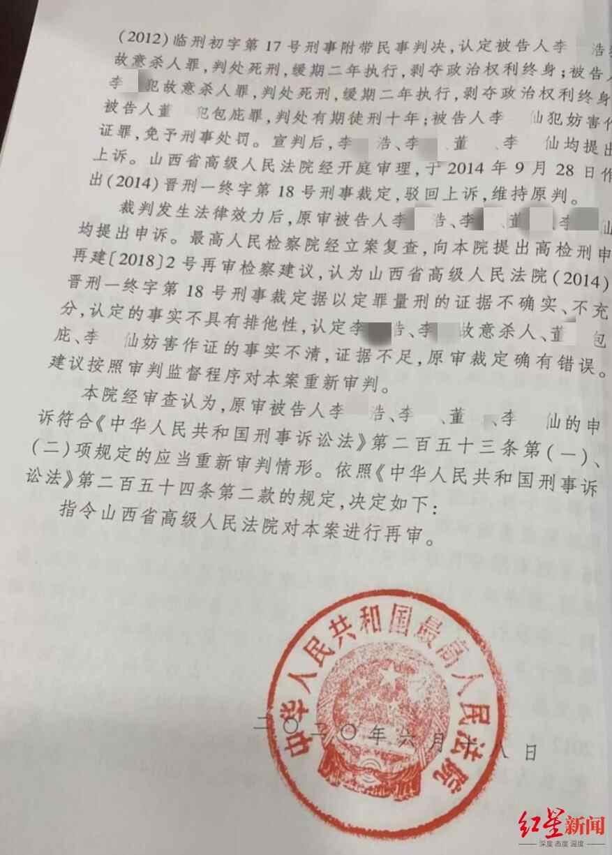 此后,4名被告人均提出申诉。2018年1月15日,最高人民检察院认为山西省高院的相关裁定“确有错误”,建议最高人民法院依照审判监督程序重新审判。2020年6月18日,最高人民法院作出再审决定,指令山西省高院对此案进行再审。
