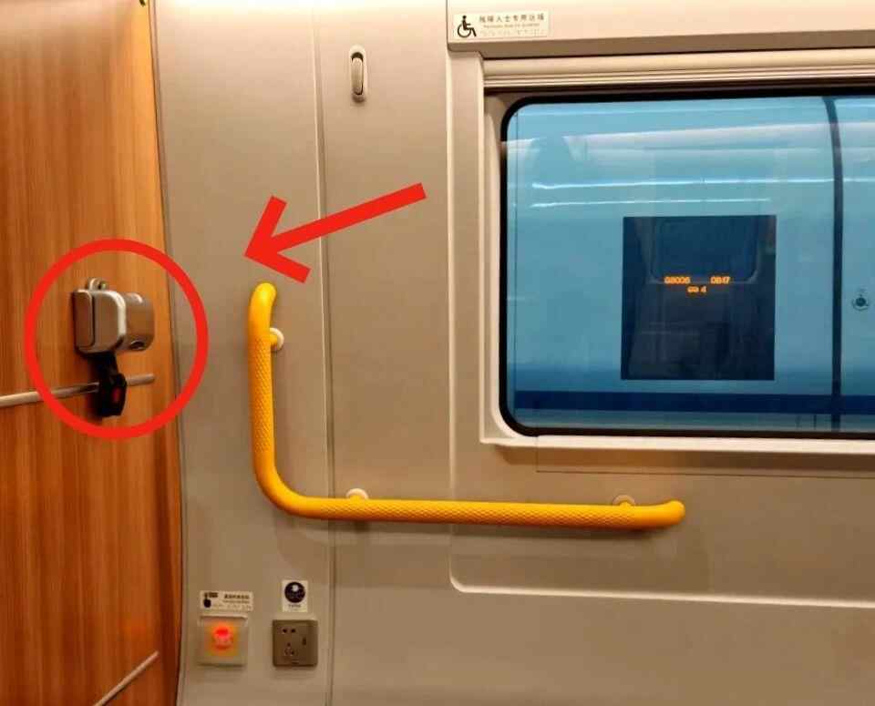 轮椅固定绑带设置在无障碍车厢残疾人专用座席旁,方便使用轮椅的旅客安全存放轮椅。
