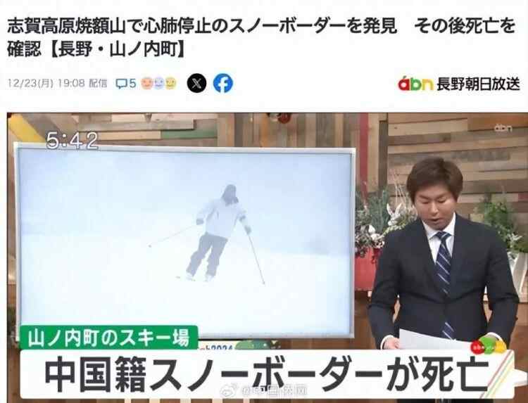 据日本媒体23日报道,一名32岁的中国籍男性游客22日在日本长野县一滑雪场遇难,当地医院称其死于窒息。