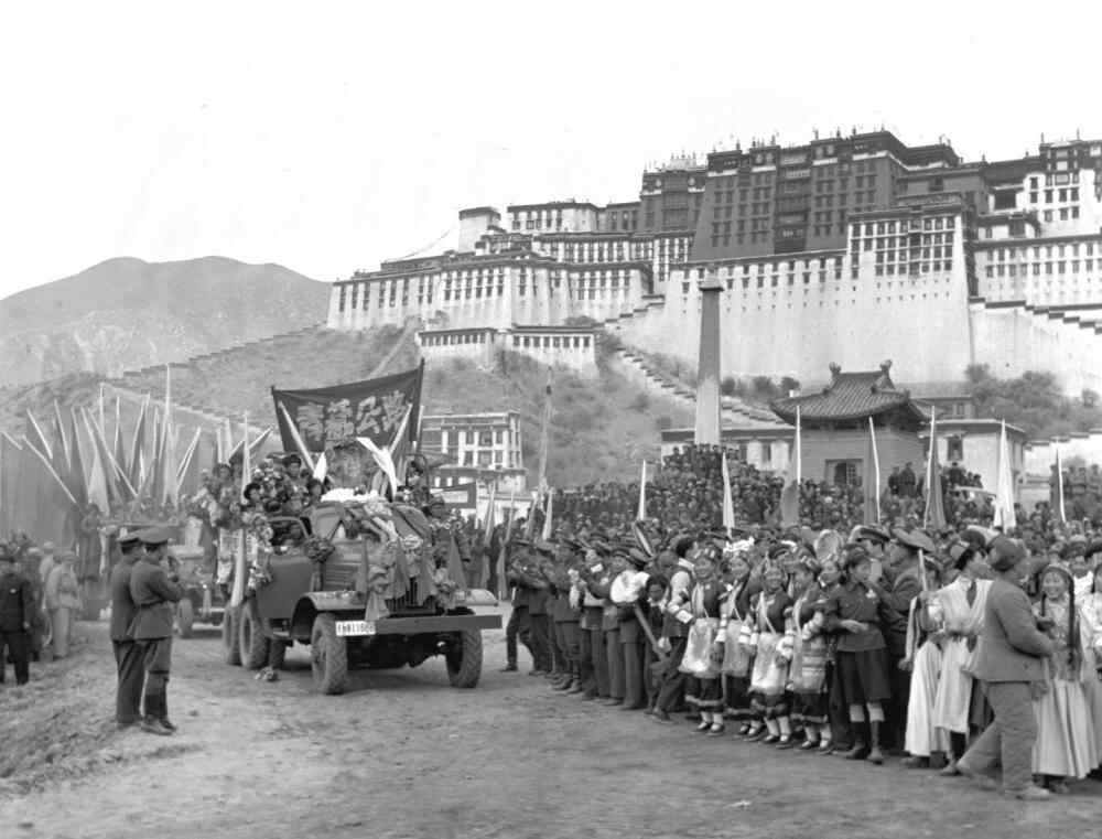 1955年1月11日,康藏、青藏公路的通车典礼在拉萨举行。通往祖国边疆西藏的两条大动脉——康藏公路和青藏公路,已于1954年12月25日同时通车。 新华社记者刘诗临、任用昭摄