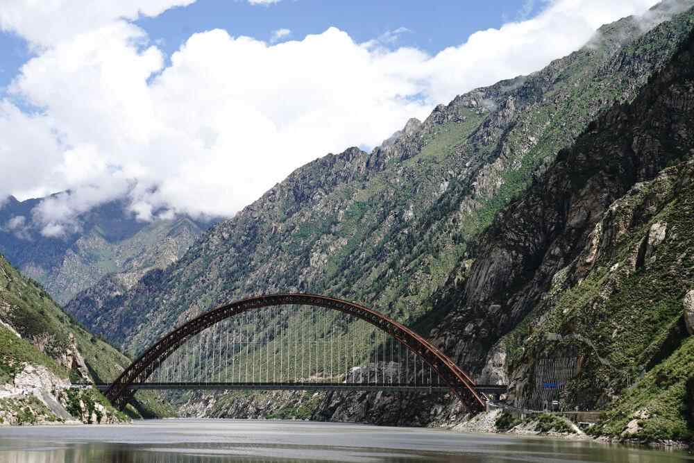 藏木雅鲁藏布江双线特大桥全长525.1米,主拱跨径430米(2021年7月11日摄)。 新华社记者 刘洪明 摄