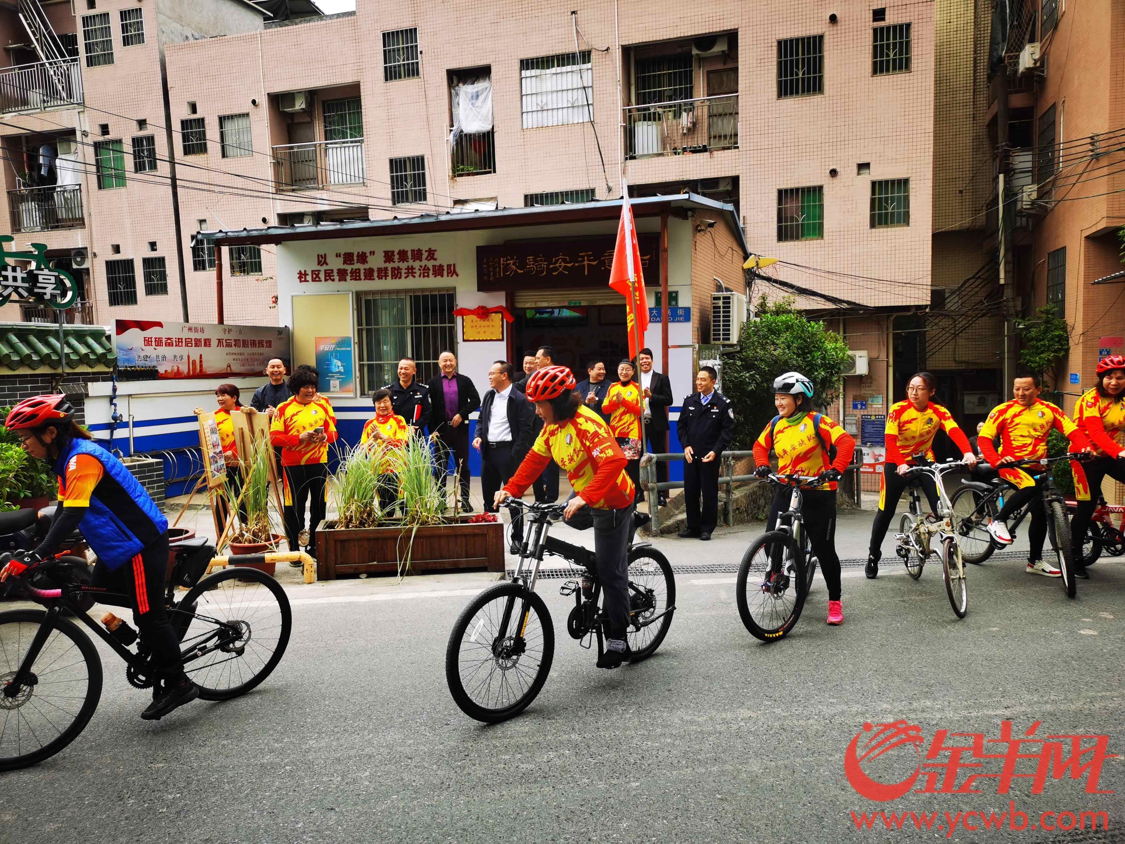 当天,石围塘派出所如意社区社区民警、骑队创始人刘少廷为社区警校上了第一堂课。最后,骑队队员合唱铿锵有力的队歌,随着一声令下,队员们英姿飒爽地骑上自行车,到辖区多个重点防范地段开展治安巡逻。