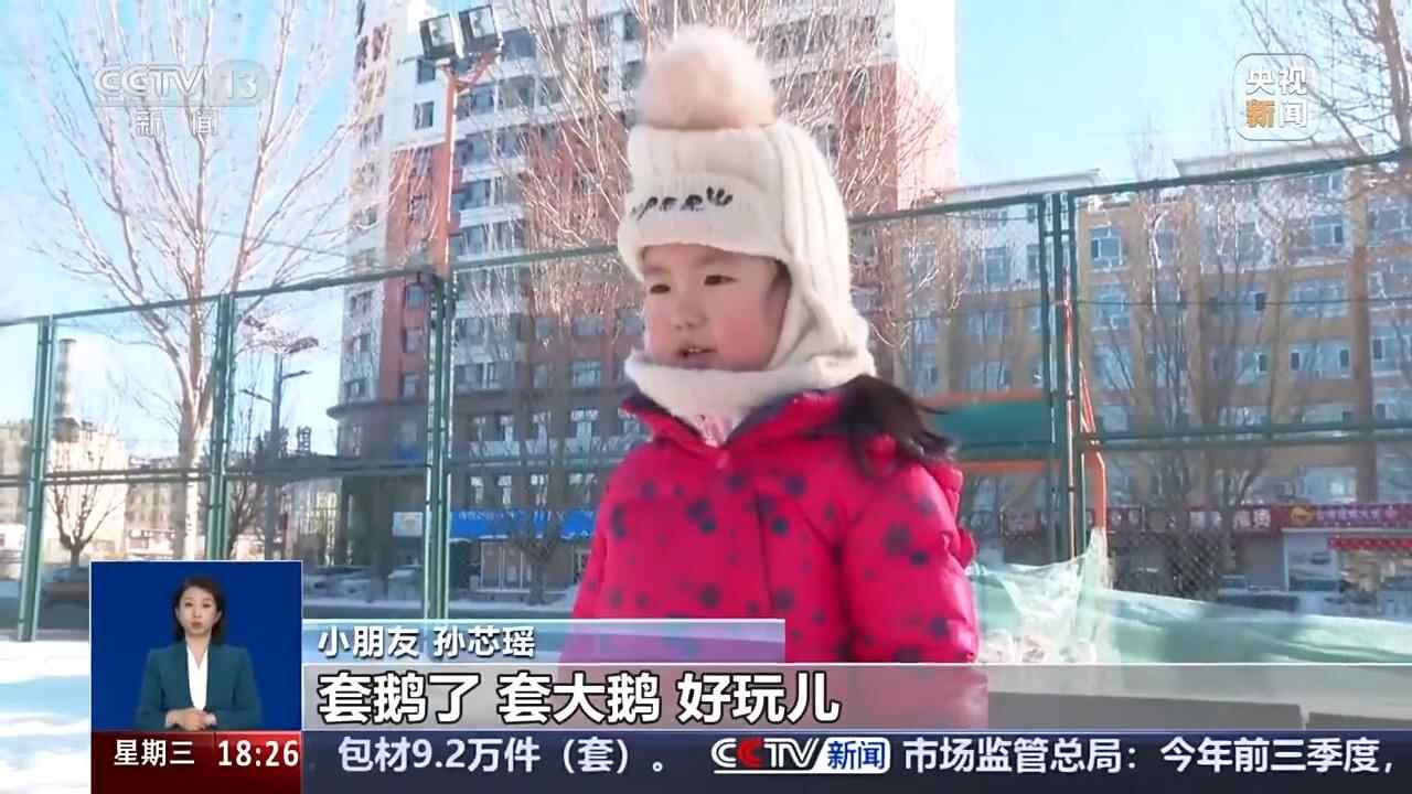 小朋友 孙芯瑶:套鹅了,套大鹅,好玩儿,我拿三个(圈)没套着,让我爸套着了。