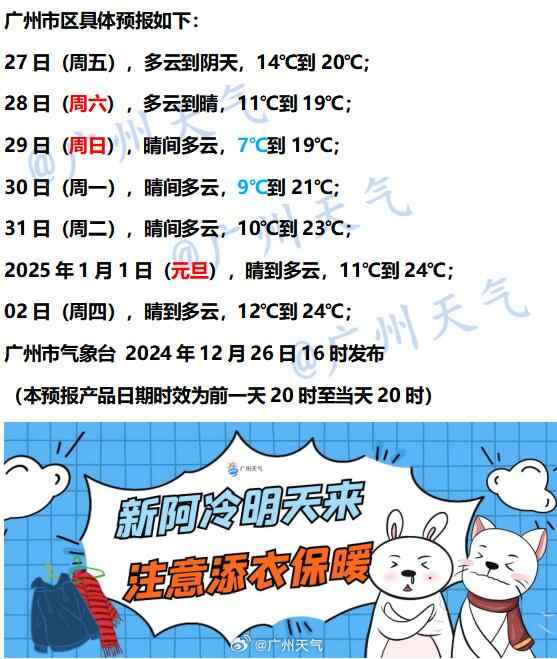 广州方面,今日新阿冷来,29日早晨将出现过程最低气温7℃左右。周末sunny哥回归,适合外出走走哦。