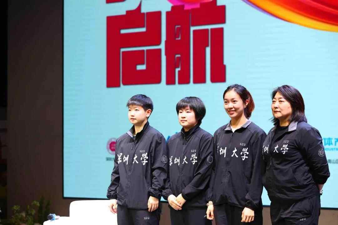 12月26日深大附中的体育馆内,乒乓球世界冠军孙颖莎的一席话将现场气氛彻底点燃。当天,孙颖莎、覃予萱、吴咏琳等深圳大学乒超俱乐部(以下简称“深大俱乐部”)运动员、教练来到深大附中,为学子们带来一堂“场馆里的思政课”。思政课前,深大俱乐部在南山区蛇口文体公园举办了“2024赛季启航仪式”,为即将启程的2024赛季乒超联赛决赛誓师。