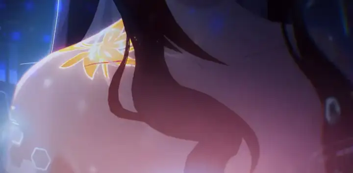 至此氛围急转直下,闪回中出现了幻胧的面容,她将停云推入火中,代表苦难的火焰和象征着涅槃重生的莲花要素不断浮现,最终落在了忘归人停云的肩头,代表了停云的浴火新生,也与2.7剧情中停云接受了内心伤痛醒来所对应。