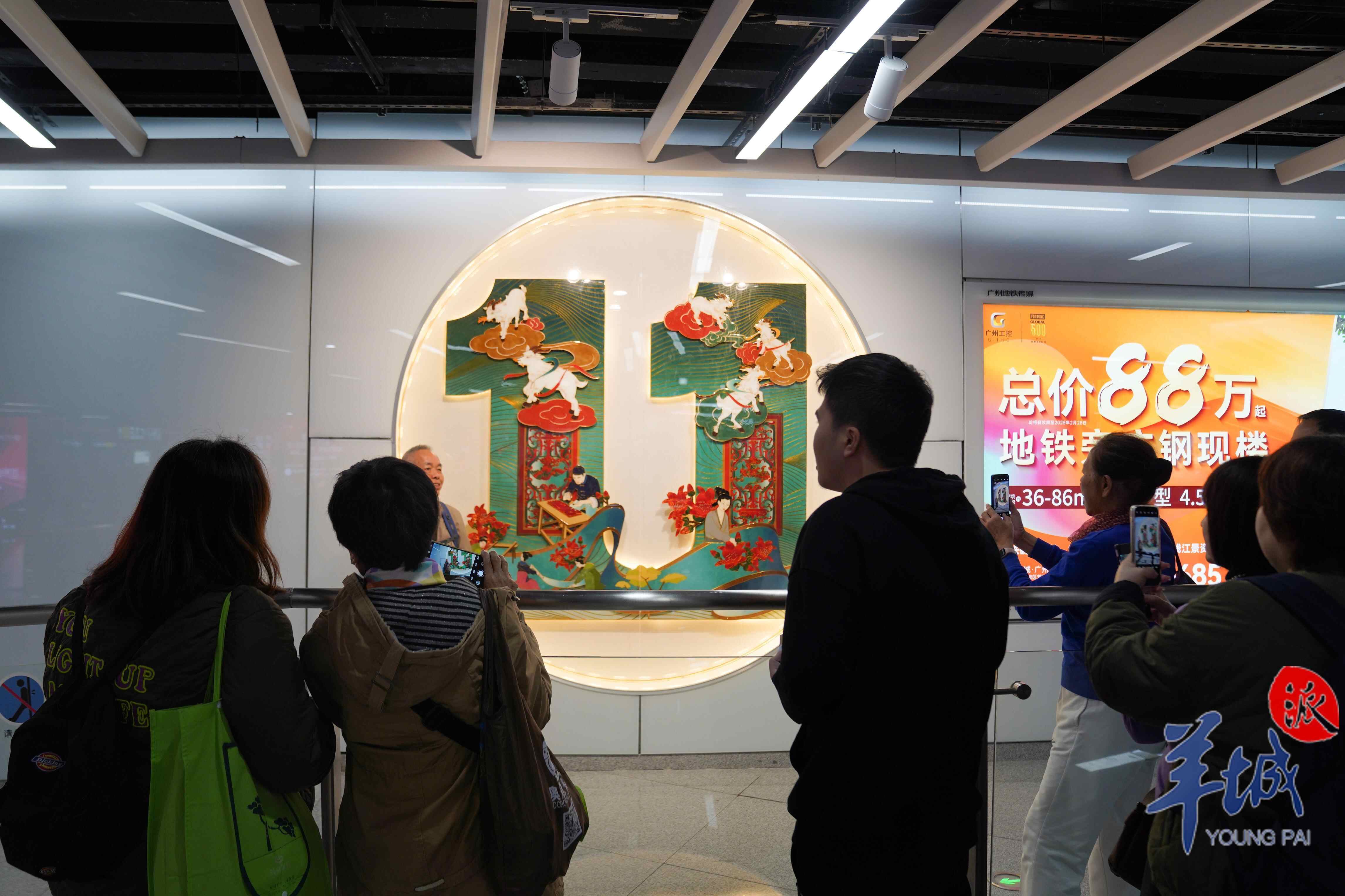 “赏”:花艺布置、主题摆设装点沿线各站,其中彩虹桥、石围塘、鹤洞东、琶洲、天河公园、龙口西、中医药大学等车站的装饰专门融入了非遗元素。部分站点还推出特色文化展览,包括天河公园的五彩瓷器文化展、书法文化展,云台花园的非遗主题展,石围塘的艺术摄影展,龙口西的广东历史文化展,中医药大学的中医文化展以及芳村的广绣作品展等。