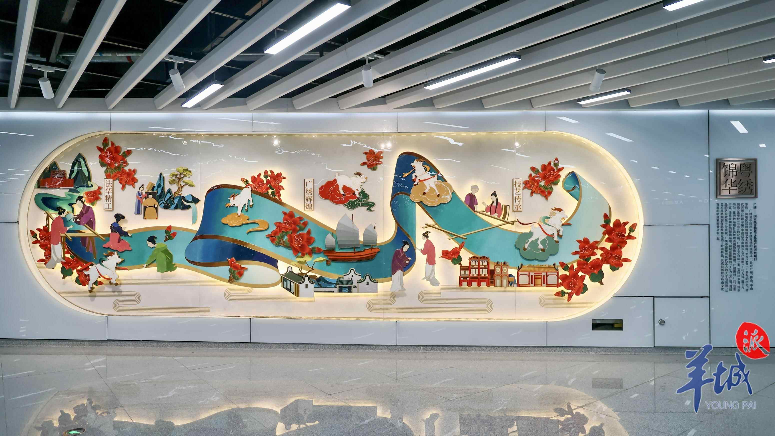 车站整体装修风格以非遗为主题,选取了粤剧、广绣、广彩瓷、广东醒狮、广雕、传统医药等具有代表性的非遗项目,与重点站进行融合设计,凸显岭南文化特色,打造“湾区轨道文化长廊”示范线。