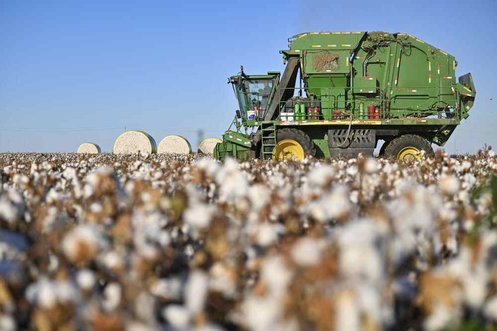 9月29日,采棉机在新疆生产建设兵团第六师五家渠市的棉田采收棉花。新华社记者胡虎虎 摄