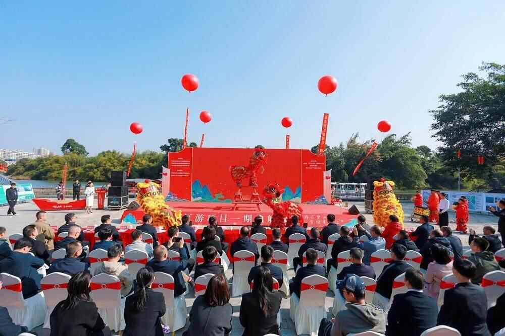 12月28日,“游百里画廊,赏绿美增江”最美增江游项目一期启航仪式在增城荔韵公园举行,标志着增江首个水上旅游项目正式启航,环南昆山—罗浮山县镇村高质量发展引领区(以下简称“引领区”)绿美文旅品牌建设迈出坚实一步。增城区领导林怡辉、王长春、张英智、韩涛、毛敢良、罗迎、尹博望,省直、市直部门有关负责同志,区直有关部门、镇街负责同志出席启航仪式并参加游船体验。