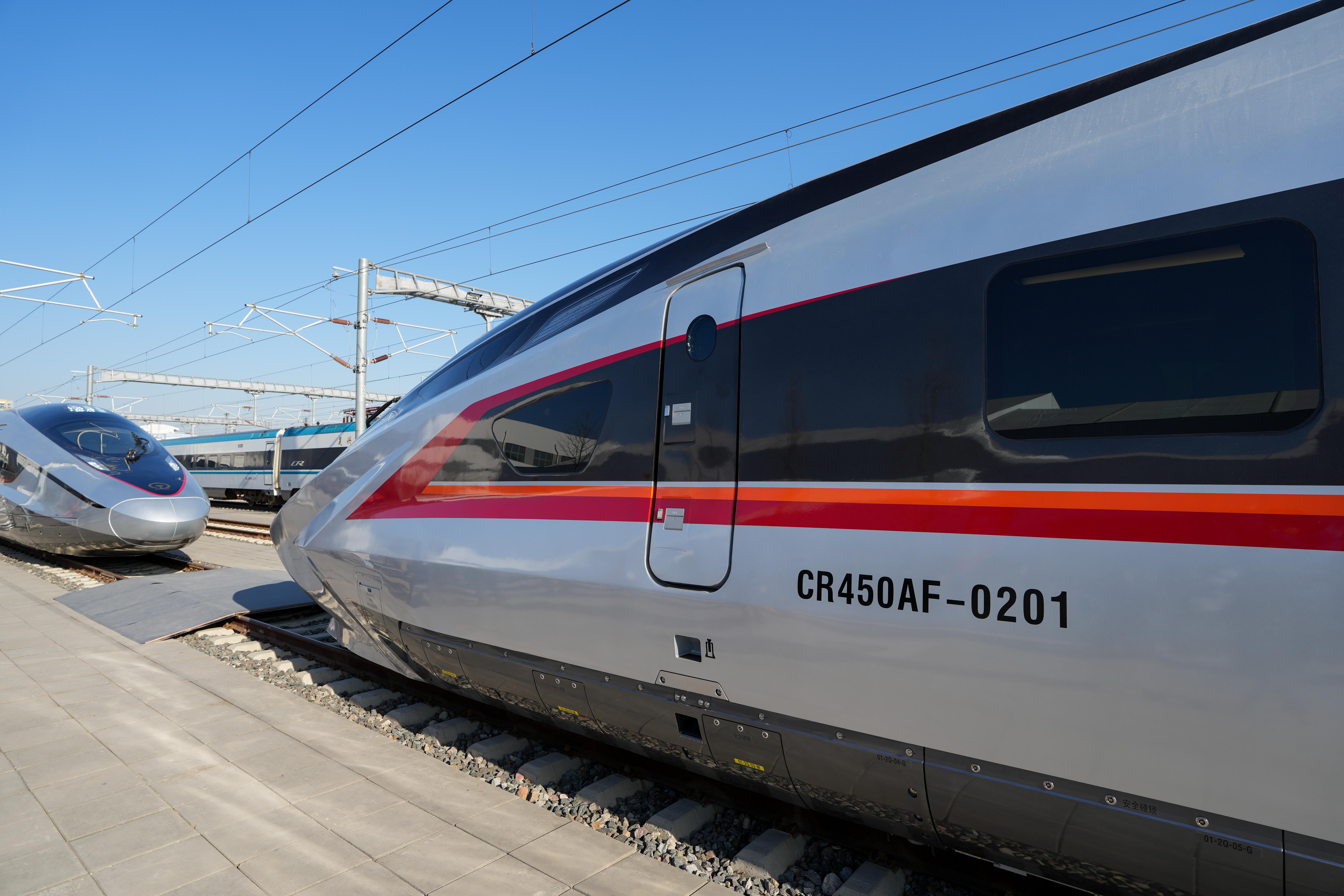 12月29日,运营时速400公里的CR450动车组样车在北京发布,这标志着“CR450科技创新工程”取得重大突破,将极大提升中国铁路科技创新水平和科技自立自强能力,进一步巩固扩大中国高铁技术世界领跑优势。