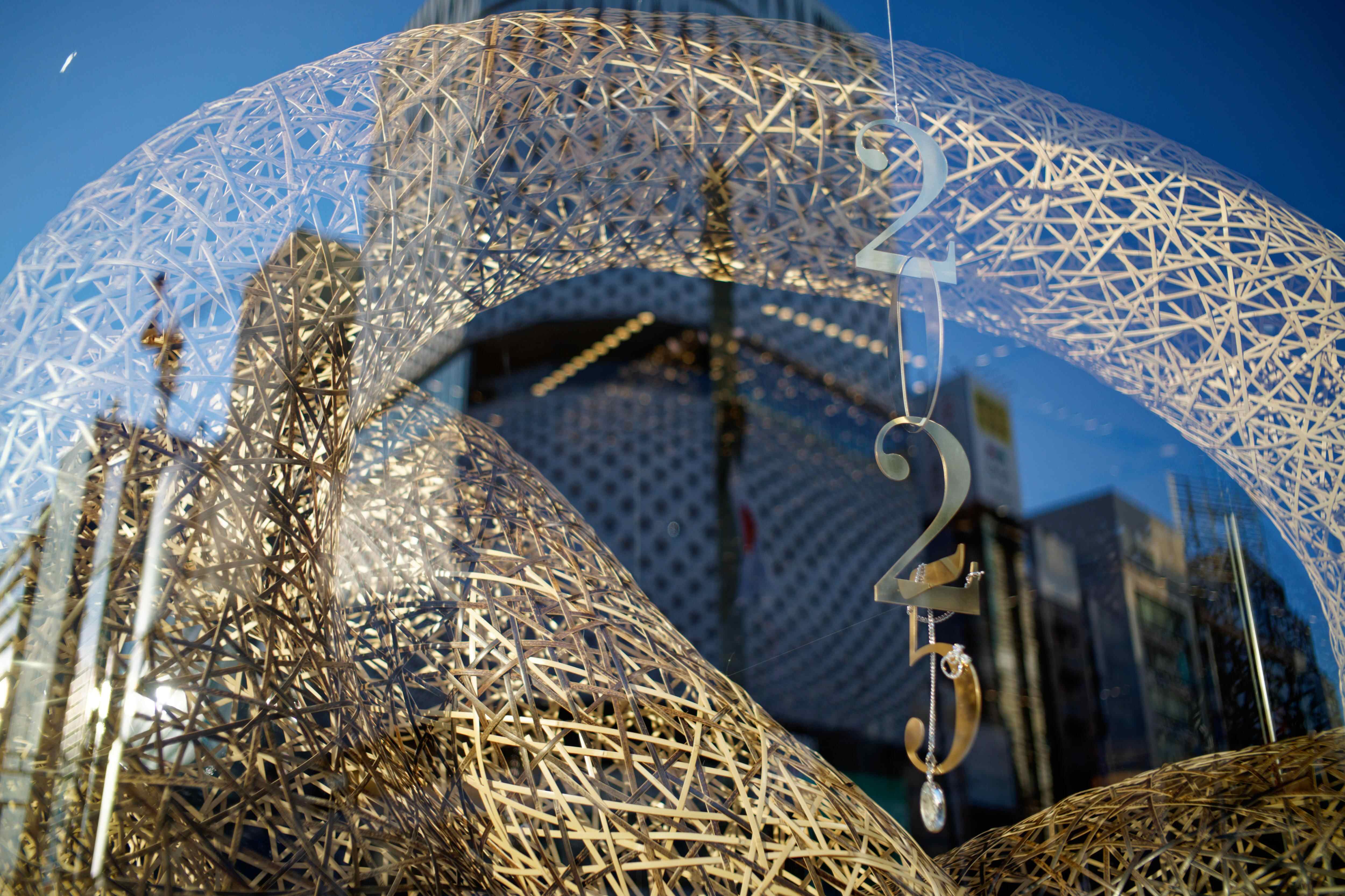 这是12月28日在日本东京银座街头拍摄的一个新年展示橱窗。