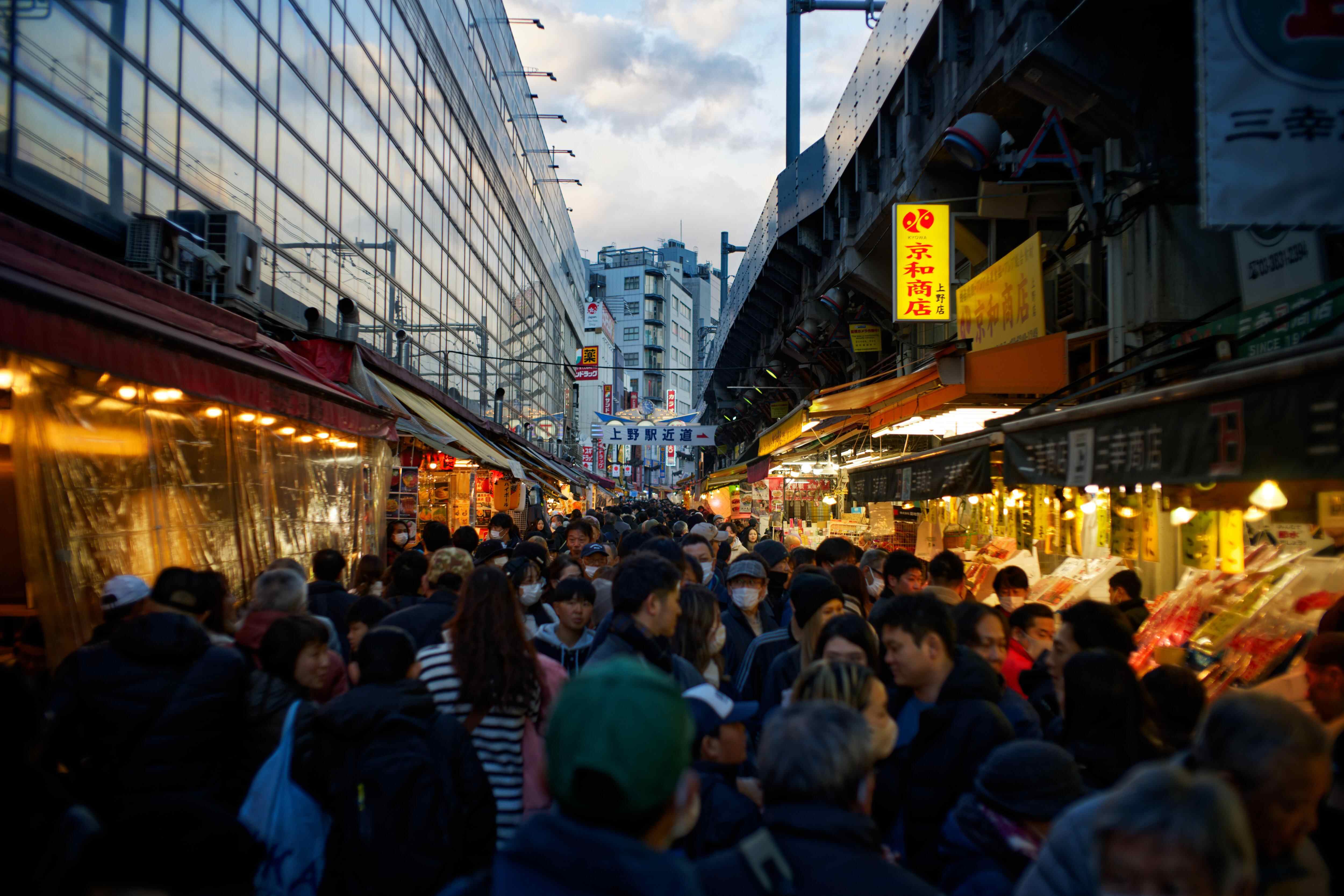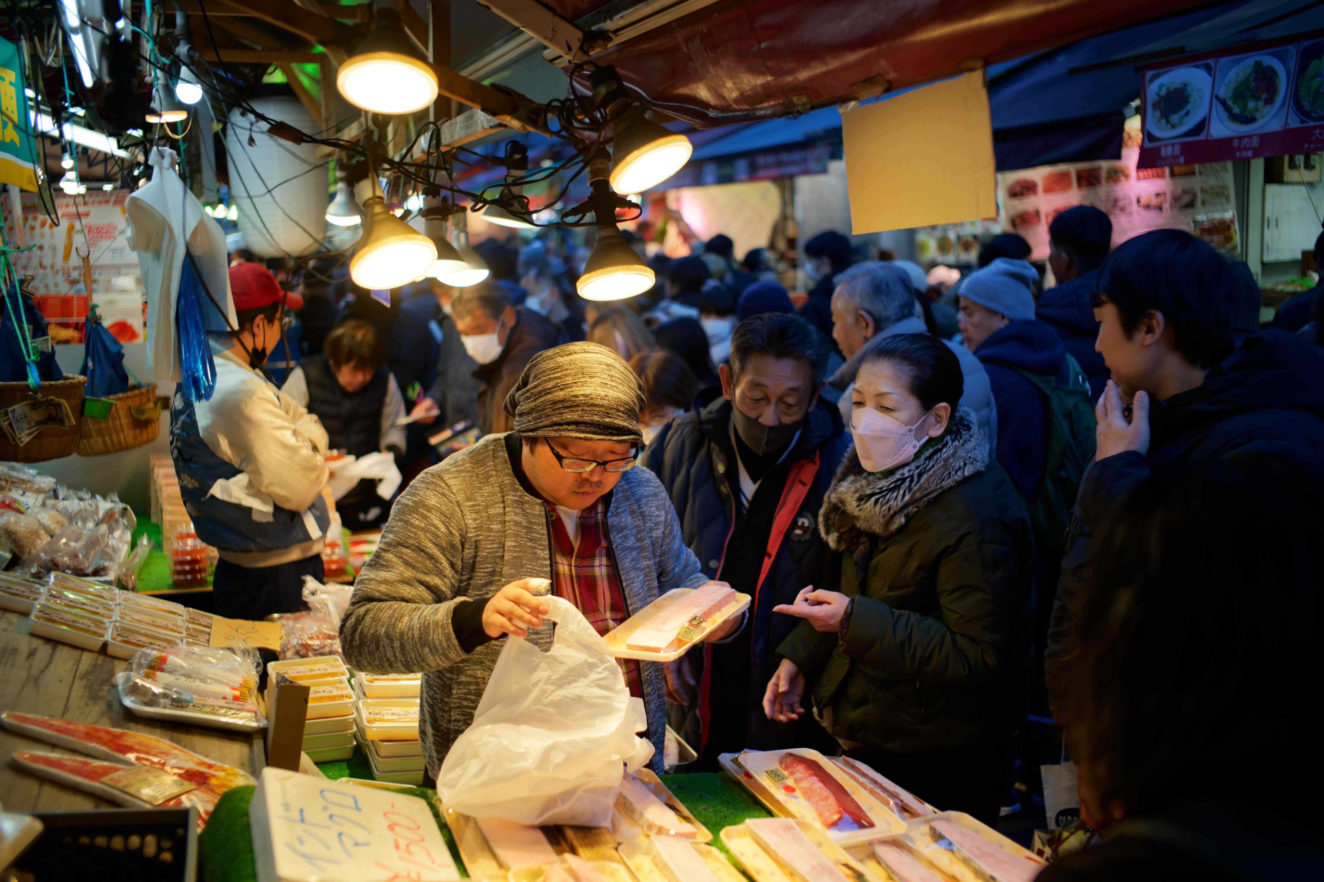 12月28日,人们在日本东京银座街头排队购买新年点心。