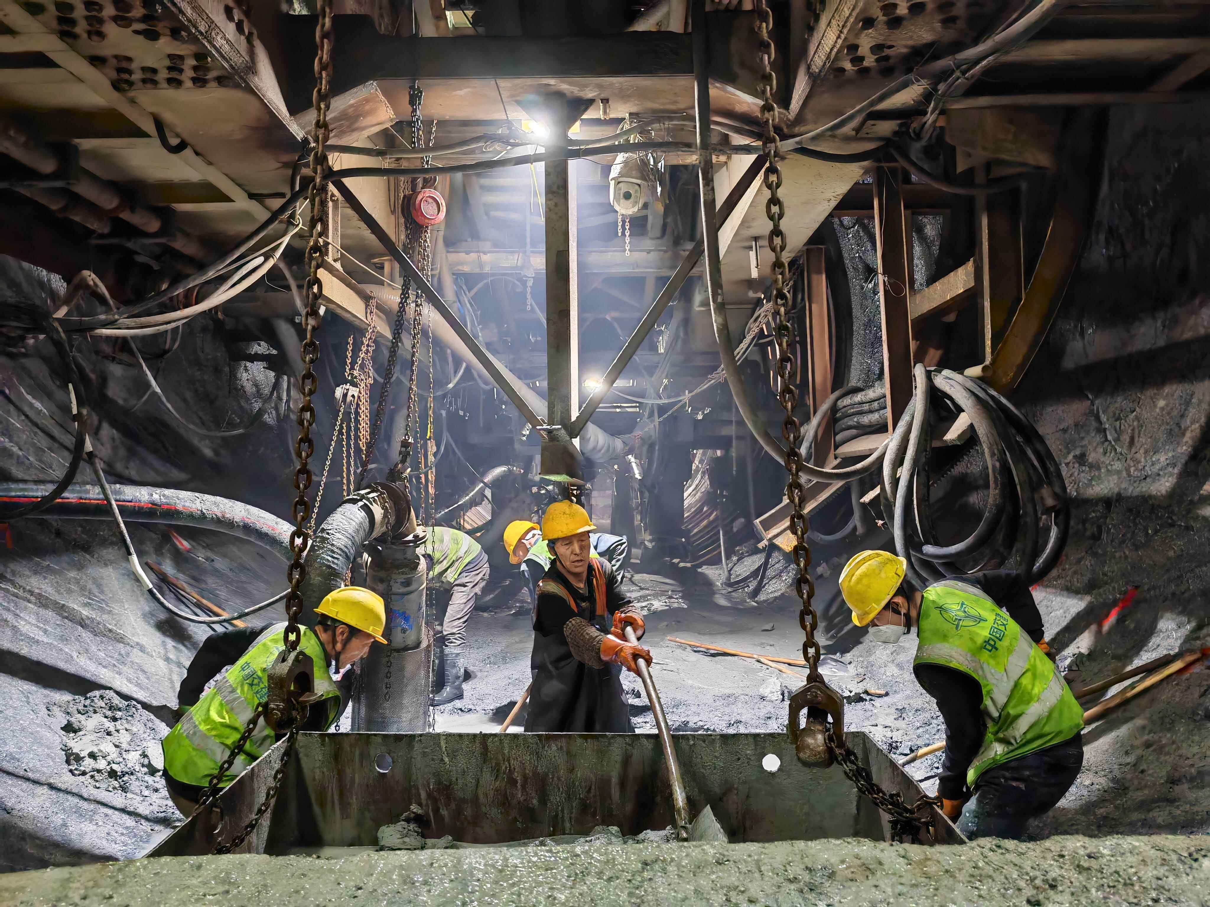 建设过程中,承建方中国交通建设集团有限公司项目成员攻坚克难,确保TBM成功穿越多个不良地质段,先后攻克3.3km长距离反坡排水等多项“卡脖子”难题,创造了单日最大进尺33.16m和单月最高进尺500.2m的施工纪录。