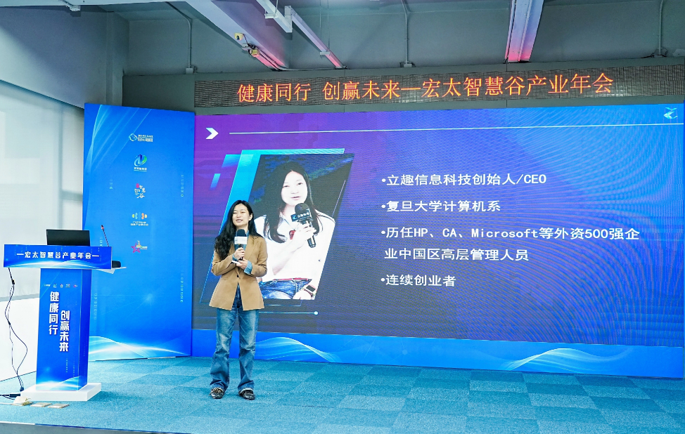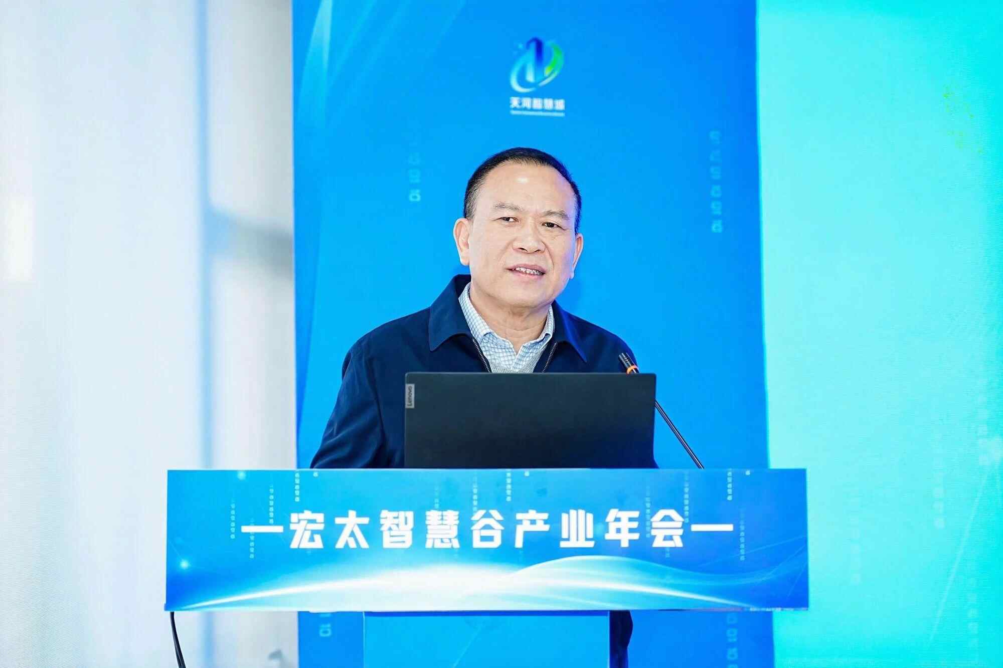 宏太智慧谷董事长江枚元在致辞中表示,园区已连续九年举办年会,遴选出一批在科研、成长、创新等方面表现卓越的杰出企业。面对经济挑战,园区企业仍坚持创新,不断前行。同时,国家出台的一系列政策也为企业注入了新的活力。江枚元还强调,企业发展与个人健康并重,希望大家在追求事业的同时,关注身心健康。