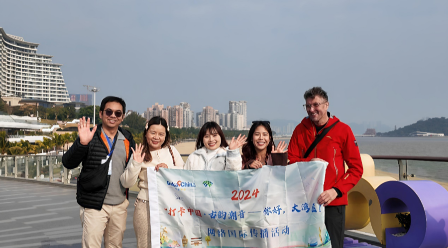 12月29日上午,参加2024“打卡中国·古韵潮音——你好,大湾区!”网络国际传播活动的外国网红博主们来到位于珠海市香洲区的情侣路,感受这里的浪漫气息。