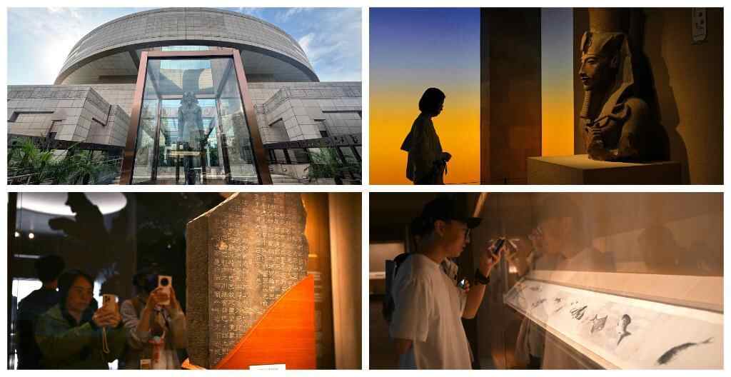 走进上海博物馆人民广场馆的“金字塔之巅:古埃及文明大展”,788件古代埃及珍贵文物与数十件中国古代文物同时展出。展览于2024年7月19日正式向公众开放,将持续至2025年8月。这是近20年来埃及在境外举办的最大规模文物展,其中95%以上的文物是首次来到亚洲,400余件古埃及重要墓葬区萨卡拉最新出土的古埃及文物实现“世界首展”。