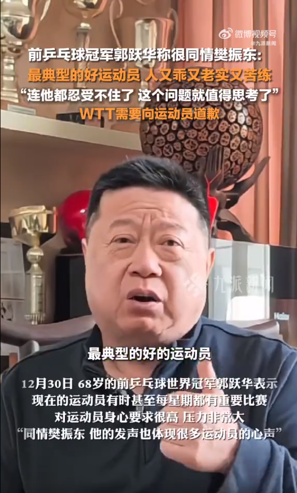 “同情樊振东,他的发声也体现很多运动员的心声。”郭跃华认为,WTT从商业角度需要高排名运动员参与,却忽略了运动员的承受能力。“我非常肯定樊振东的勇气,敢于说不。WTT需要向运动员表示歉意,然后有所改变”。
