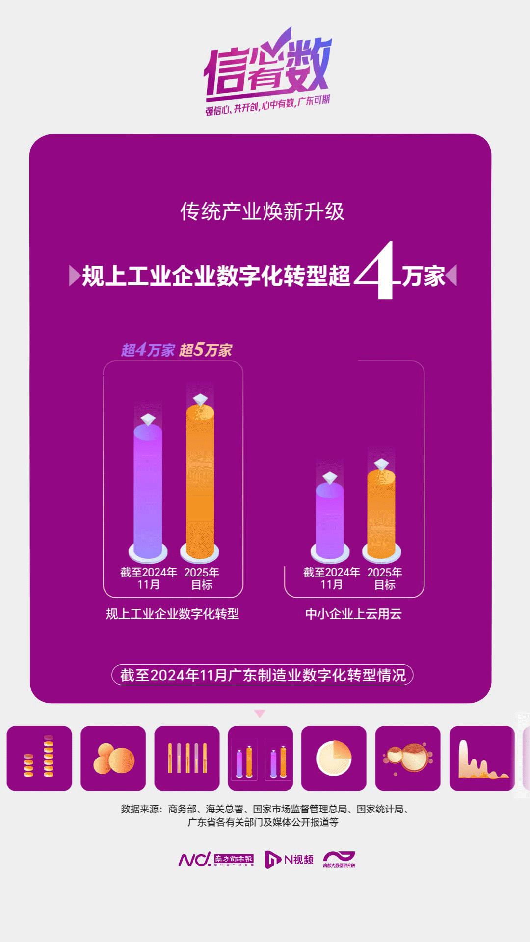 以新质生产力为传统产业转型升级赋能,广东走在全国前沿。传统制造业正在加速向数字化、智能化转型升级。广东省工业和信息化厅数据显示,截至今年11月,广东累计推动超4万家规模以上工业企业数字化转型,带动80万家中小企业上云用云,帮助制造业企业实现增收增利和降本提质增效,绿色安全发展。