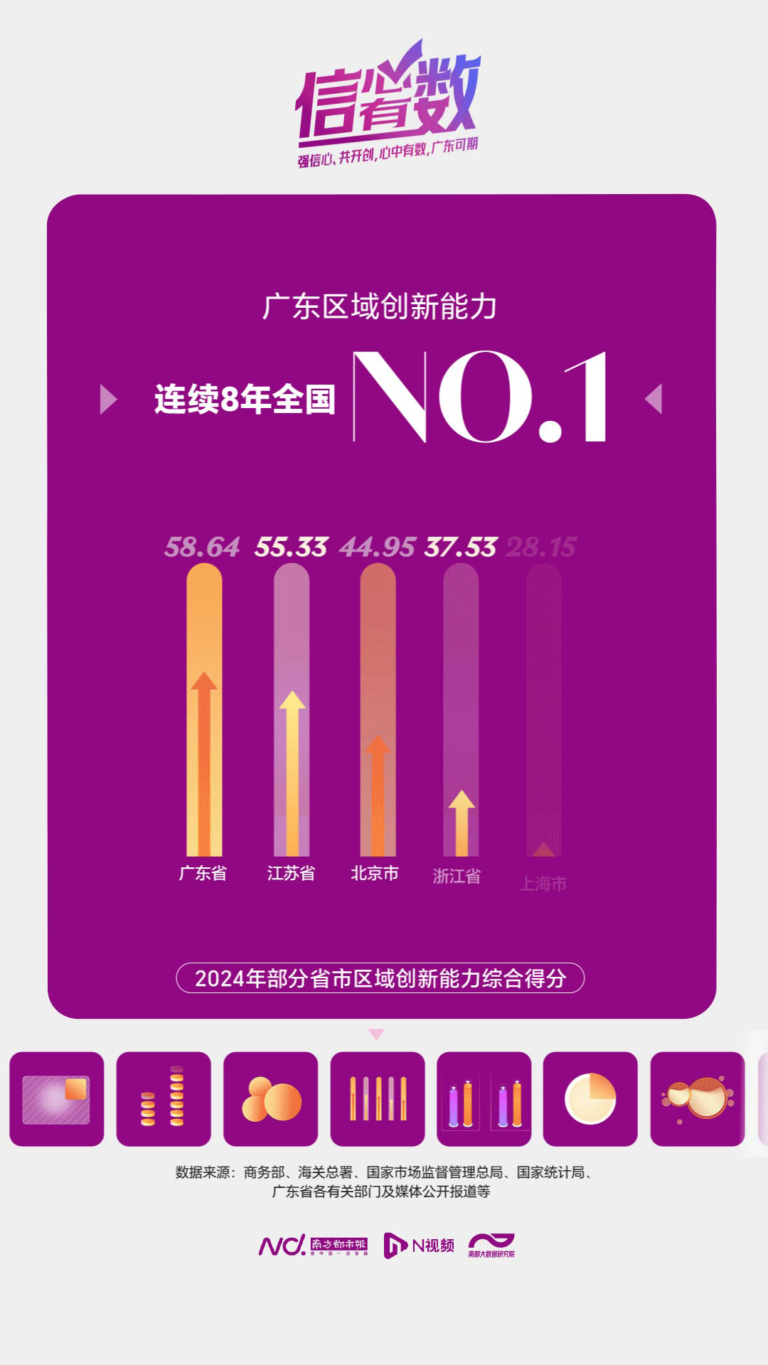 惟创新者进,惟创新者强,惟创新者胜。面对全球新一轮科技革命和产业变革带来的挑战和机遇,广东以创新为第一动力,全力推进产业科技互促双强,以创新引领制造业高质量发展。中国科技发展战略研究小组、中国科学院大学中国创新创业管理研究中心发布的《中国区域创新能力评价报告2024》显示,2024年广东区域创新能力连续八年居全国首位,“企业创新”“创新环境”和“创新绩效”三项指标领跑优势明显。