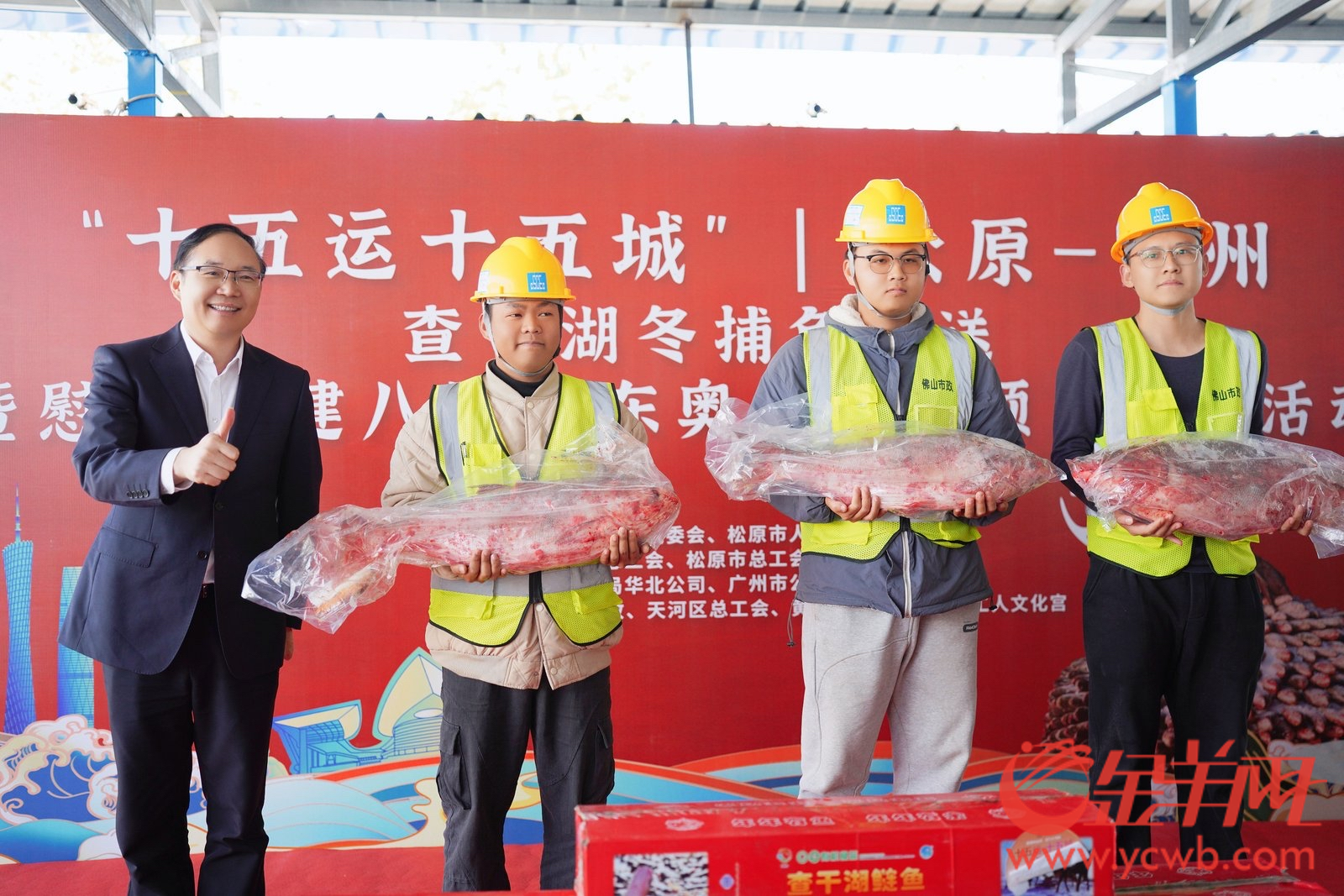 据悉,松原市赠送的660箱查干湖胖头鱼,自打捞时就被迅速低温冰冻,再跨越千里被运送到广州劳动者们的餐桌上。与此同时,广州向松原赠送了600箱迟菜心和600箱砂糖橘。迟菜心和胖头鱼的“双向奔赴”,既是南北风味的碰撞,更是“十五运·十五城”系列活动中友谊与热情的体现。