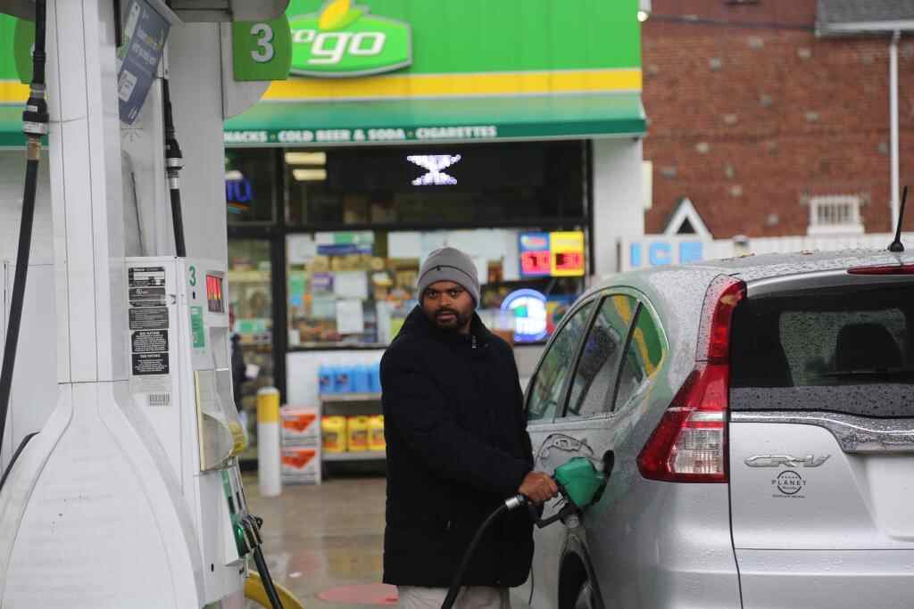 2024年12月11日,一名男子在美国纽约一处加油站加油。新华社记者刘亚南 摄