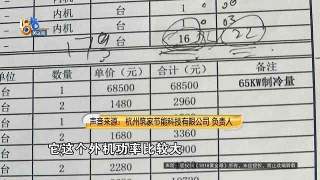 彭女士说,她家的装修项目被分包给了不同的公司,其中全屋空调地暖用的是美国“特灵”品牌,装修公司是杭州筑家节能科技有限公司,总价27万,一台室外主机的报价是68500元。