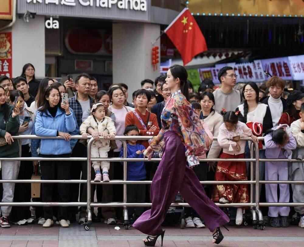 现场走秀的50位模特是广东轻工职业技术大学的在校学生,同学们带来的街头时尚快闪为上下九注入了新活力,吸引市民游客驻足观看拍照。