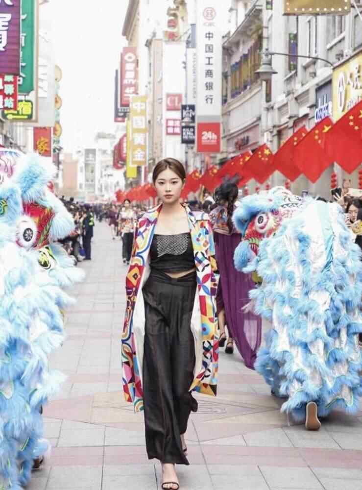 荔湾区华林街道坚持保护非遗的同时,探寻传统文化与现代融合的新路径。为了让非遗走进市民群众身边,本次活动以“非遗+”为核心理念,将上下九步行街打造为T台秀场,融入舞狮等传统文化元素,配合展示50套非遗香云纱原创服饰,将传统文化、非遗技艺巧妙地与前沿设计、时尚审美相结合,全方位、多层次地展示传统东方美学与现代都市街景。