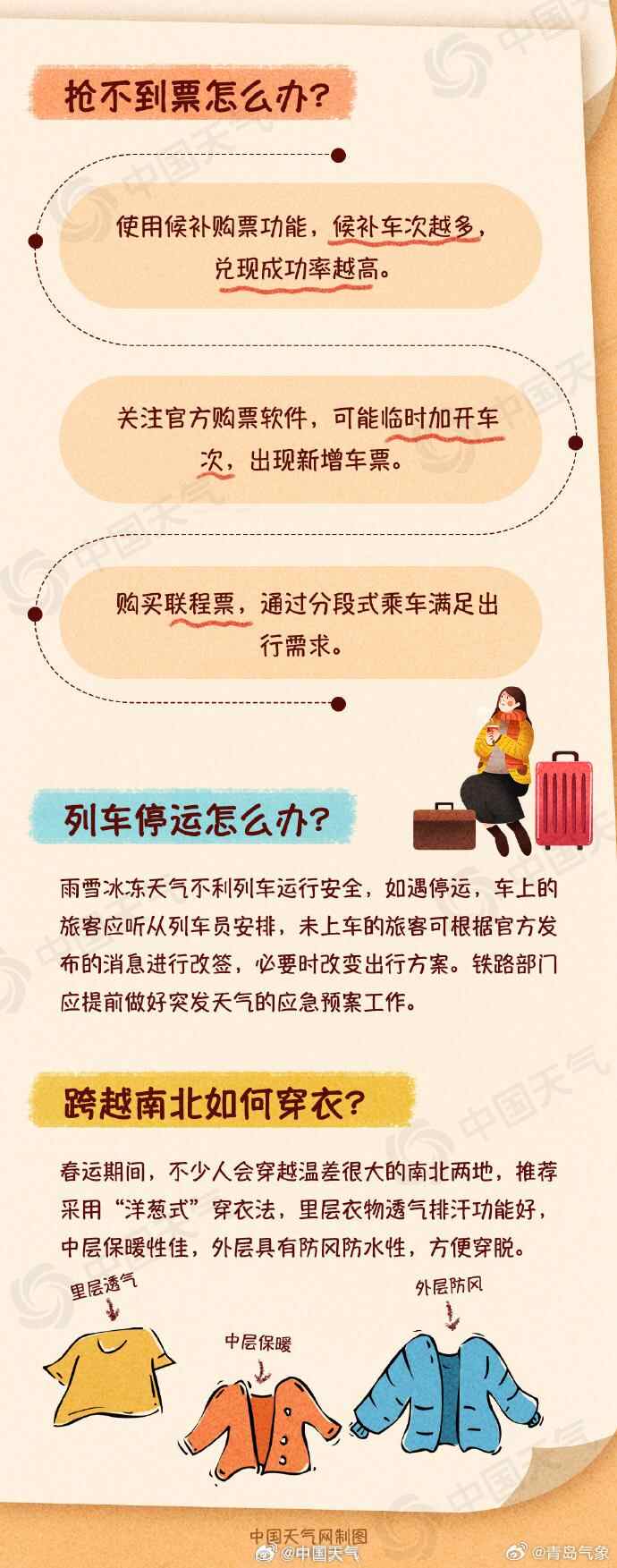 一年一度的春运即将开启,如果在春运高峰期遇上雨雪冰冻天气,如何应对?请看这篇春运出行指南~