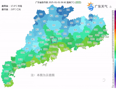 2日,南部市县多云为主,其余市县晴间多云。粤北市县介于4~8℃,南部沿海市县14~17℃,其余市县9~13℃。