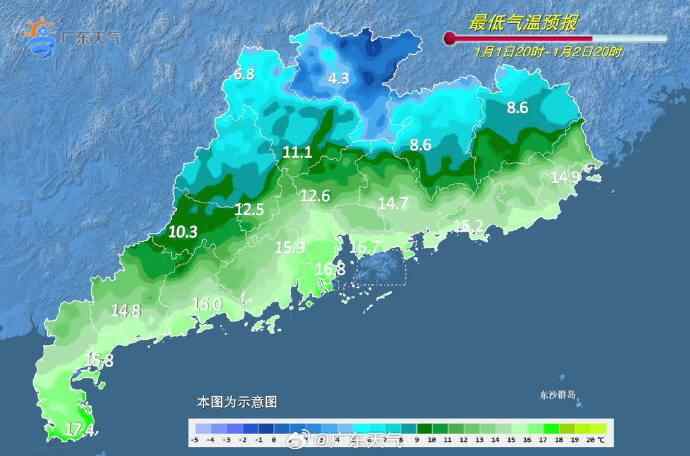4日,广东大部晴到多云。最低气温:粤北和珠三角北部市县介于3~6℃,南部沿海市县11~14℃,其余市县7~10℃。