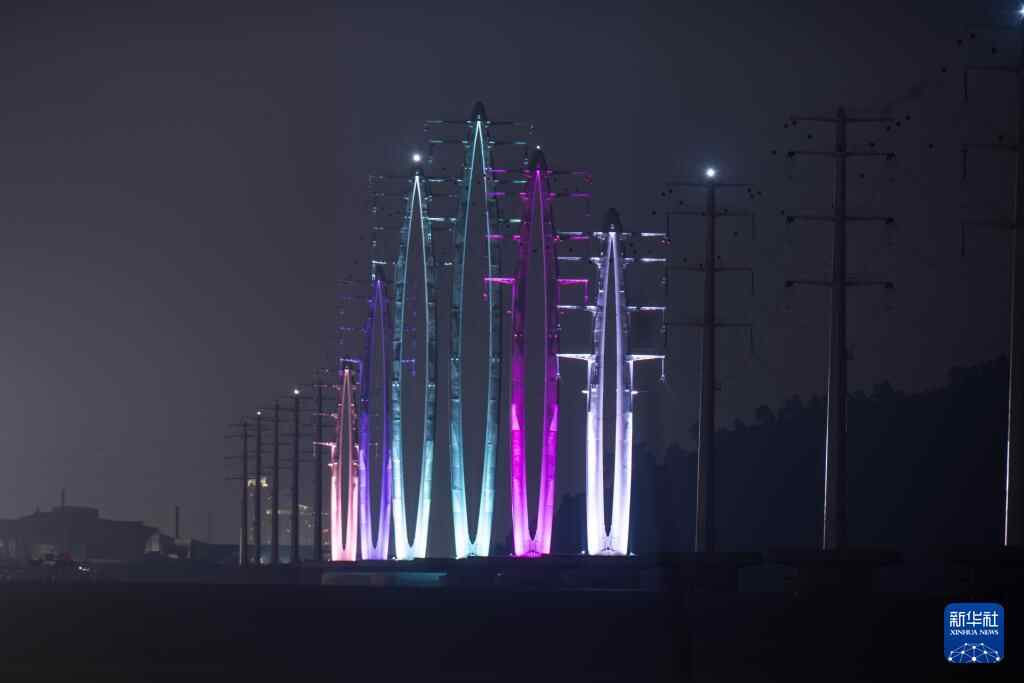 据介绍,该项目是中马共建“一带一路”合作项目,全长8.5公里,毗邻槟威大桥。项目建设的31座输电杆塔横跨槟威海峡,其中6座标志性双肢结构杆塔采用“槟榔果”外形设计并装有景观灯,呈现出独特的视觉效果。